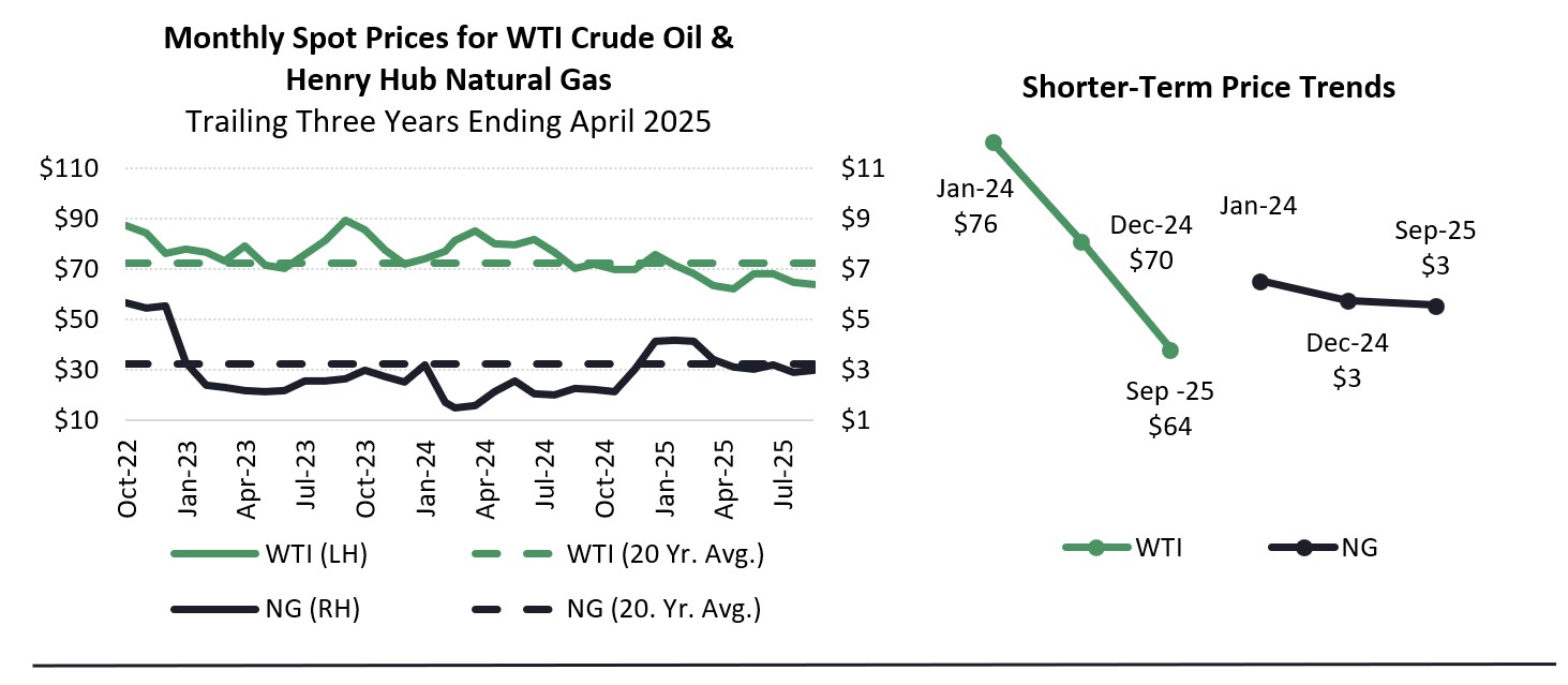 Oil prices were down approximately 9% for the calendar year 2025 through September10, remaining below the 20-year average price per barrel as overall macro-related headlines continued to weigh on the outlook for projected demand and OPEC increased the supply they are providing to the market. After rebounding in late 2024 and into early 2025, driven by a much colder winter, natural gas followed its typical seasonal pattern and, through September, is down approximately 1% for the year.
