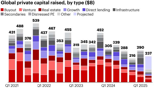 Sources: [1 ] MSCI / Burgiss Private Capital Intel, as of June 30, 2025 [2} https://privatebank.jpmorgan.com/apac/en/insights/markets-and-investing/tmt/private-credit-promising-or-problematic [3] https://www.businessinsider.com/financial-crisis-prediction-private-credit-jeffrey-gundlach-economy-2008-subprime-2025-11 [4] PitchBook: Q2 2025 US PE Breakdown Report [5] Q3 2025 PitchBook-NVCA Venture Monitor [6] Q3 2025 PitchBook NVCA Venture Monitor [7] MSCI/Burgiss Private Capital Intel, as of June 30, 2025 [8] PitchBook H1 2025 Global Real Estate Report, Green Street, As of June 30, 2025 [9] PitchBook H1 2025 Global Real Estate Report [10] U.S. Energy Information Administration