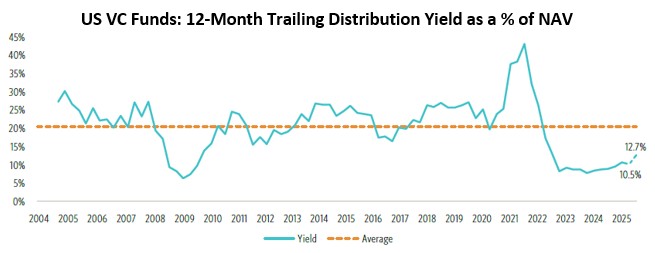 As we have highlighted on several occasions, the lack of general liquidity from venture managers has been a concern of many LPs. As evidenced by the 12-month trailing distribution yield as a percentage of NAV, we are hopeful that the market is showing initial signs of improvement: